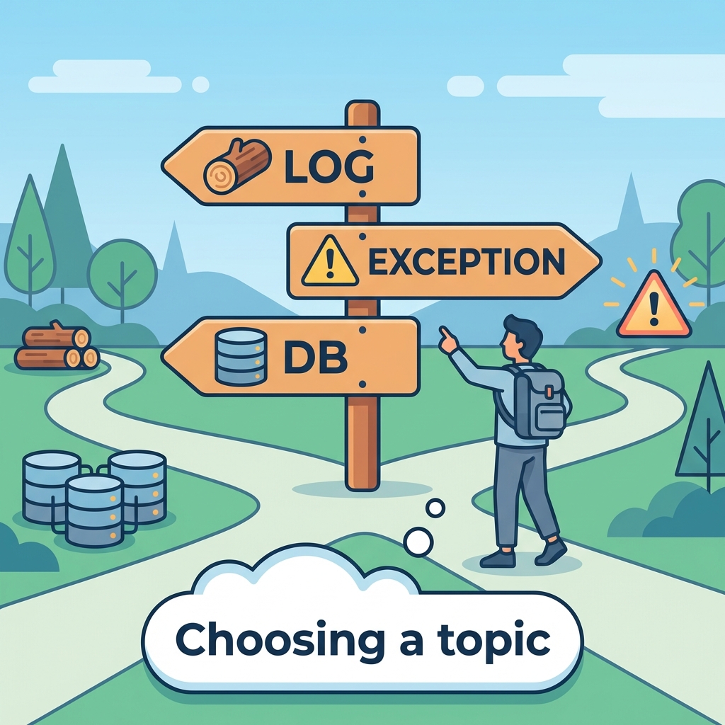 必要なら、あなたの第10章の題材を「ログ/例外/DB」どれにしても、そのまま使える「1枚メモ」を一緒に完成形にして、次章の ADR 0001 の叩き台まで一気に作れるよ🪄✨